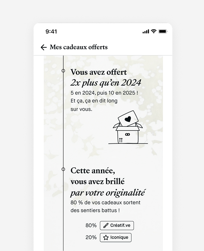 → Led user research, and defined user personas around gifting psychology.