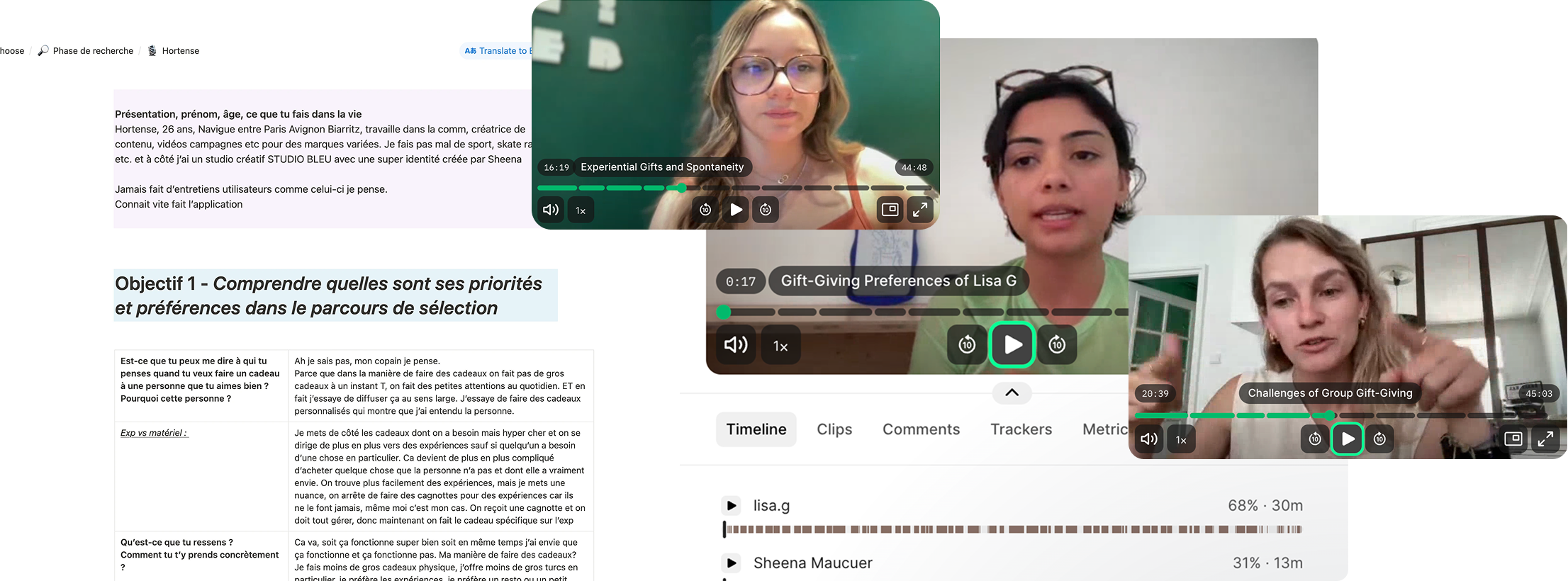 User interviews & testing sessions